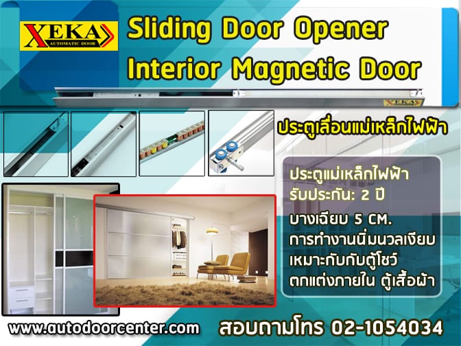 เริ่มต้นใช้งาน ประตูเลื่อนไฟฟ้า หรือประตูอัตโนมัติแบบแม่เหล็ก จะช่วยให้ท่านไม่จำเป็นต้องออกแรงในการเปิดประตู เป็นเพียงการเปิด หรือปิดประตู เพียงเบาๆ เหมือนกับประตูไฟฟ้าในรถตู้ หรือรถยนต์ที่ท่านเคยเห็นนั่นเอง หรือท่านสามารถใช้อุปกรณ์เสริมเป็นสวิตซ์รีโมทปประตู เซนเซอร์ประตู หรืออื่นๆ โดยท่านสามารถสอบถามเราได้ ซึ่งขึ้นอยู่กับความต้องการของลูกค้าเอง